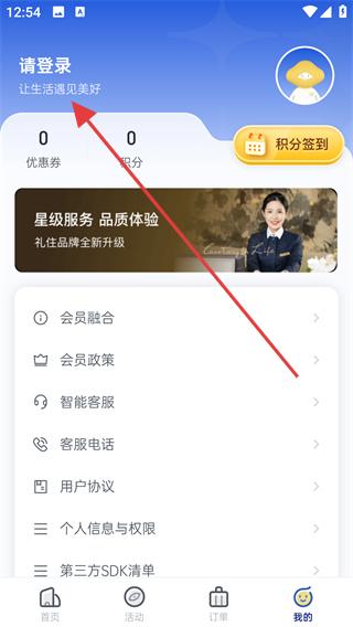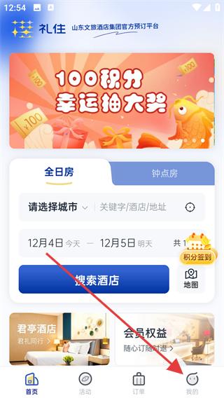 4、点击【立即登录】,即可完成礼住账号的登录操作,进入应用使用酒店预订等功能。