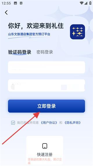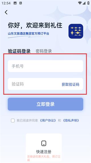3、勾选【我已阅读并同意《用户协议》和《隐私声明》】,填入收到的验证码。