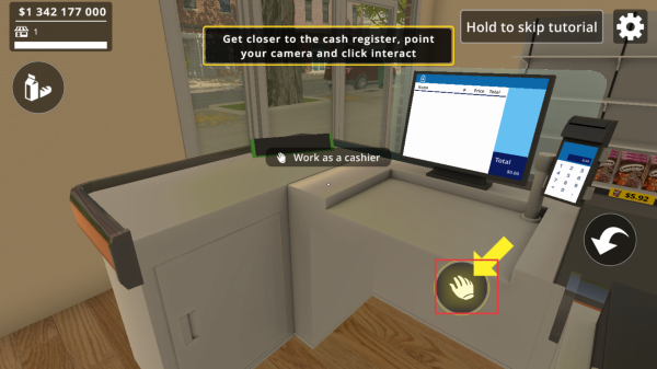4、靠近收银机,对准设备点击互动,担任收银员角色开展收银工作。