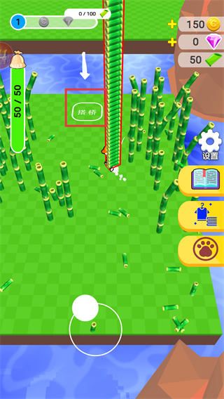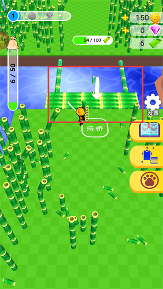 2、持续砍伐竹子,当资源进度达标后,触发“搭桥”的建造选项。