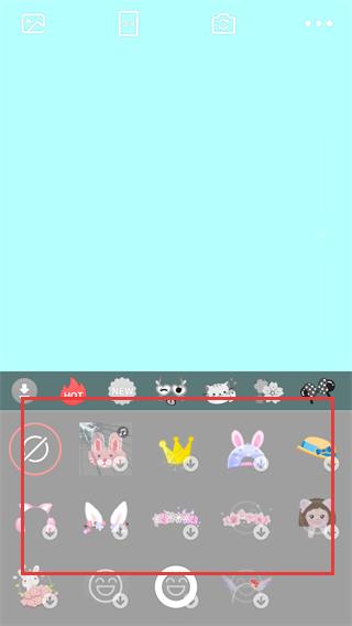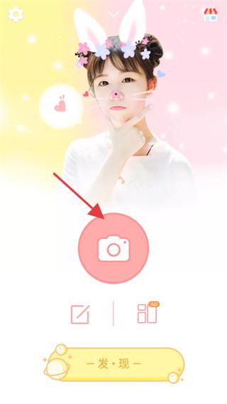 4、再选择装饰特效(如兔耳朵、皇冠等贴纸),装饰画面后点击拍摄按钮,完成自拍。