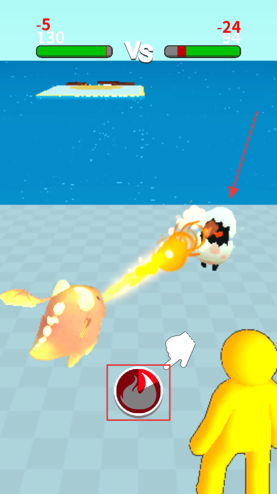 3、战斗时点击底部火焰技能按钮,释放技能增强攻击,根据敌我血量快速击败敌人。
