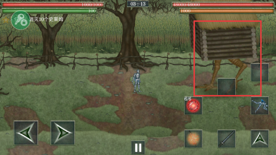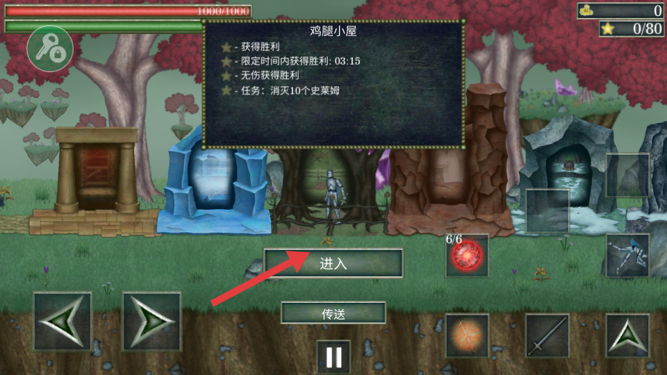 1、点击【进入】,挑战鸡腿小屋,开启消灭史莱姆的任务。