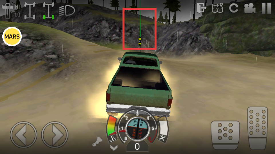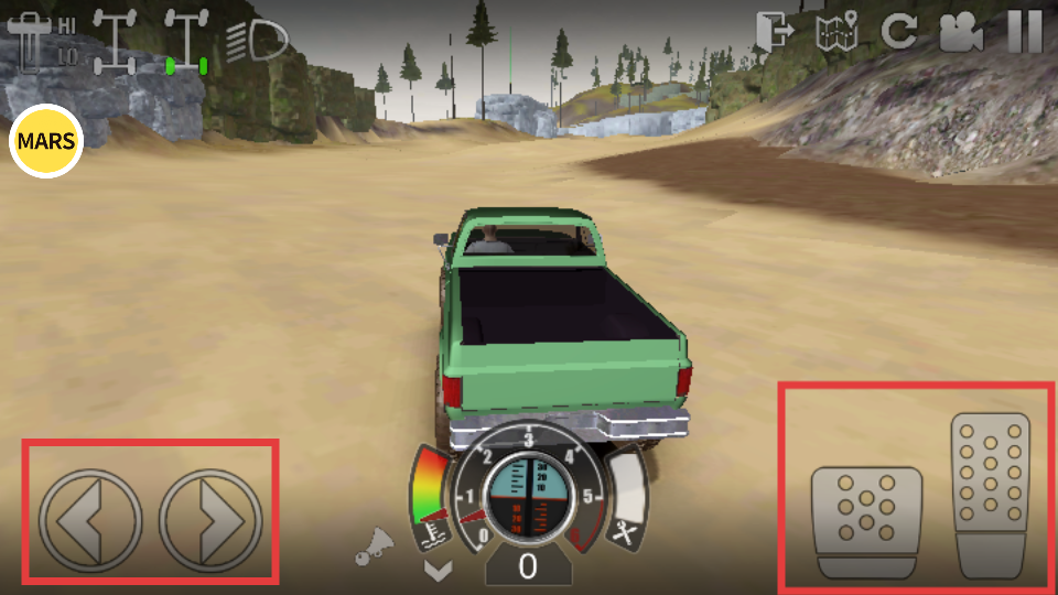 2、驾驶时通过左右方向控件操控车辆方向,右侧控件控制油门和刹车,在越野地形中平稳驾驶。