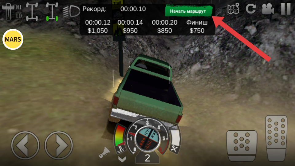 4、到达起点后点击【Начатьмаршрут】开始赛程,利用MOD菜单优势争取快速完成赛程获取高额奖励。