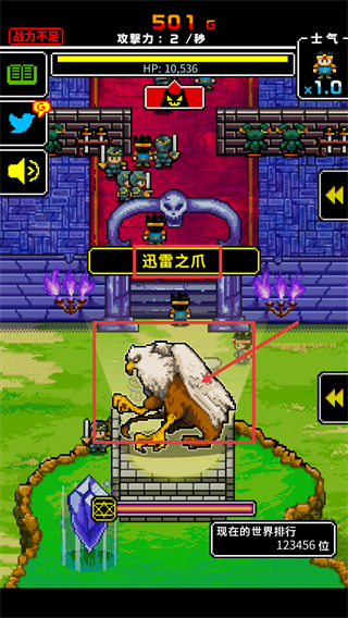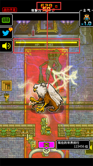 2、当前【战力不足】-【HP-10.555】,可借助场景中的装置调整状态,为后续挑战强敌做好准备。