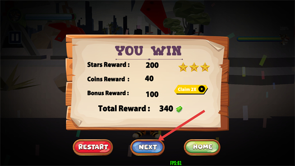 4、获胜后可获得奖励,点击【NEXT】进入下一关。