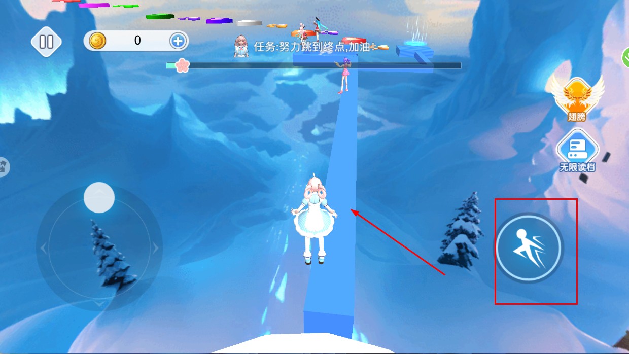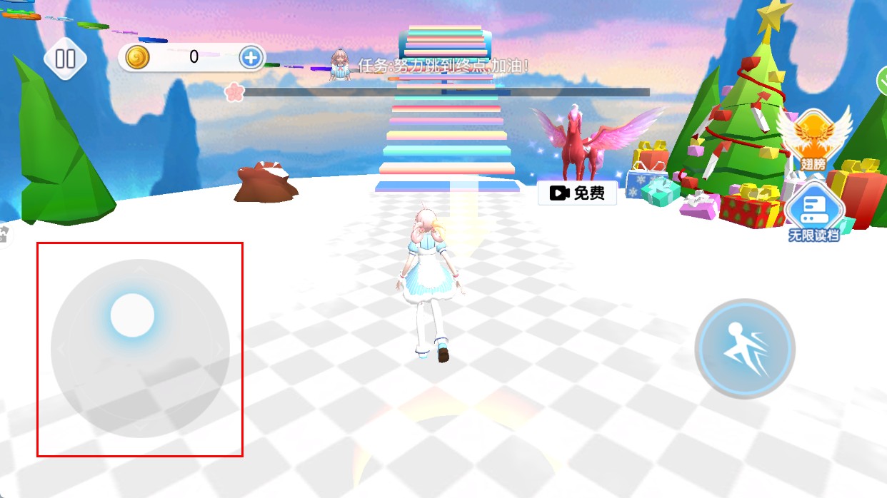 2、用左侧移动按钮调整方向,走上【彩色阶梯】,稳步向终点前进,提升通关效率。