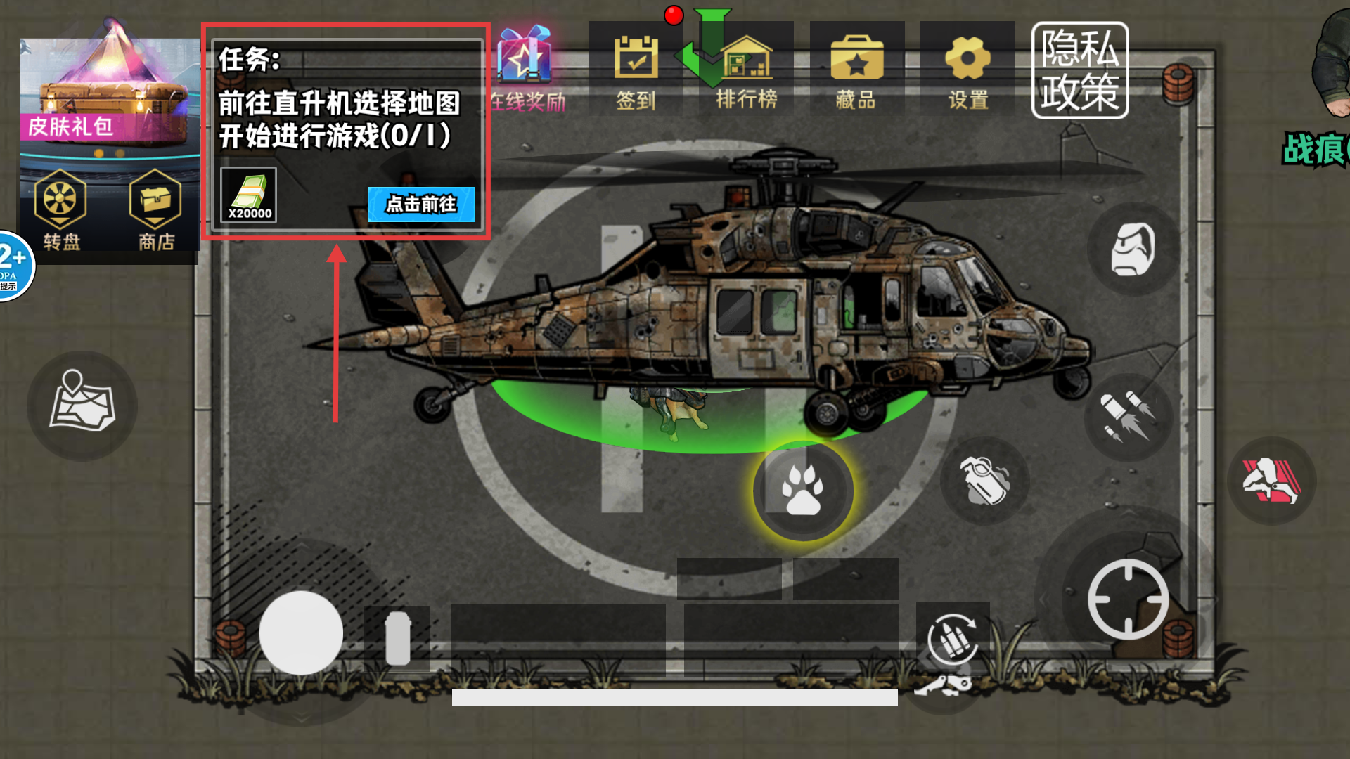 4、点击【点击前往】按钮前往直升机选择地图,开始游戏前准备好装备,确保安全撤离并获取奖励。