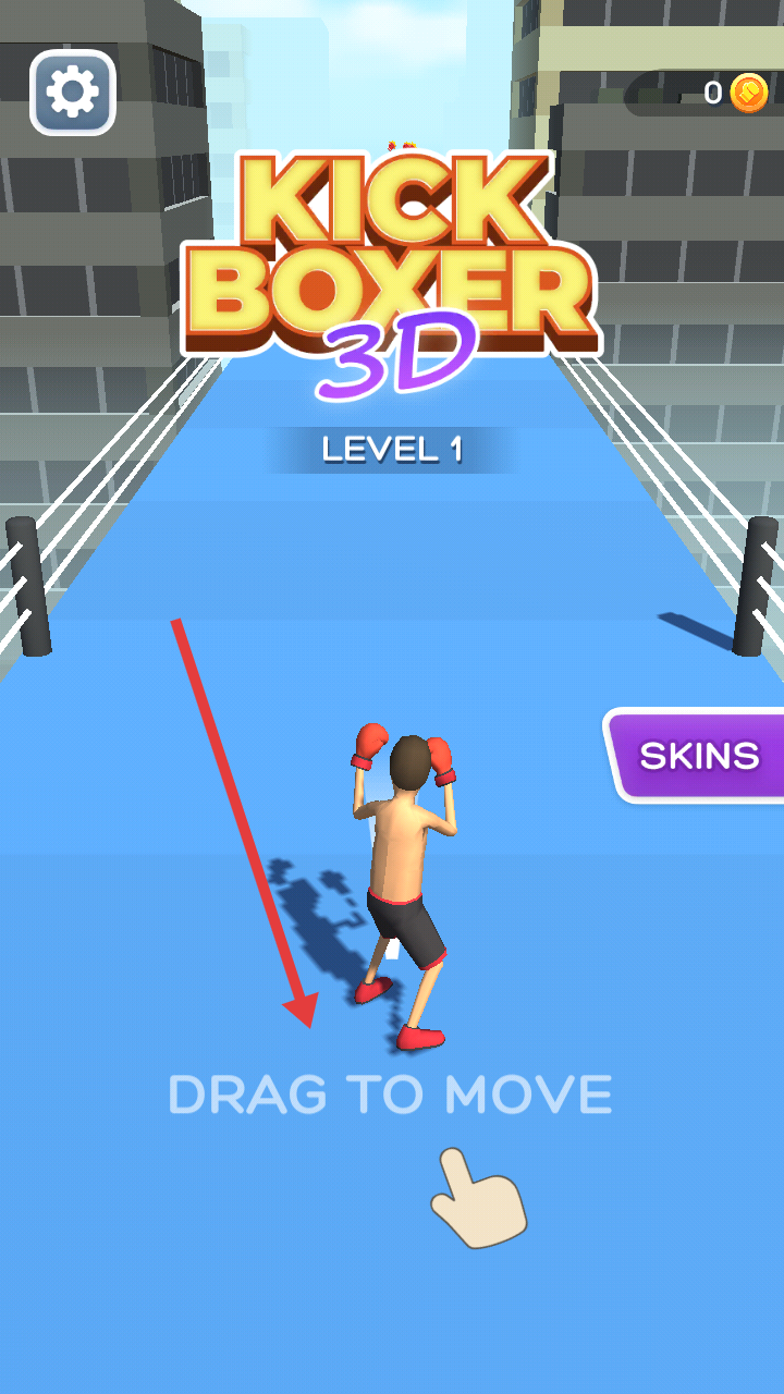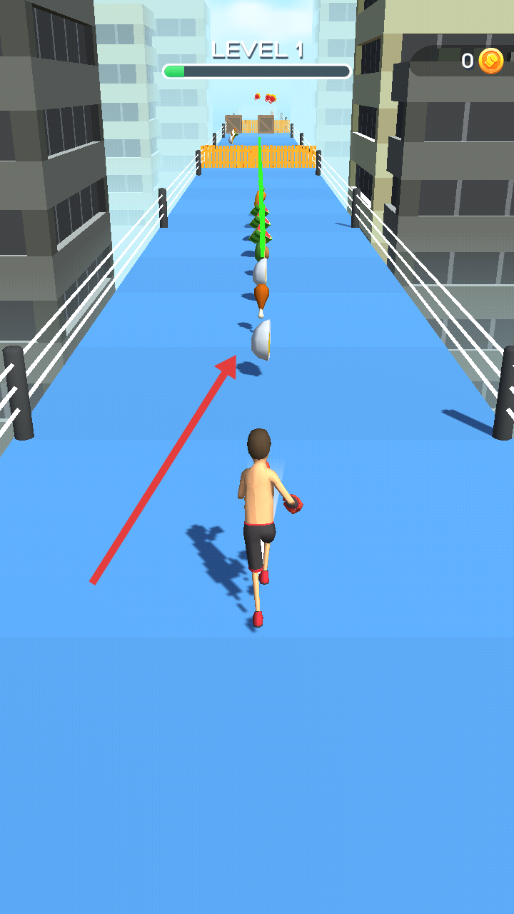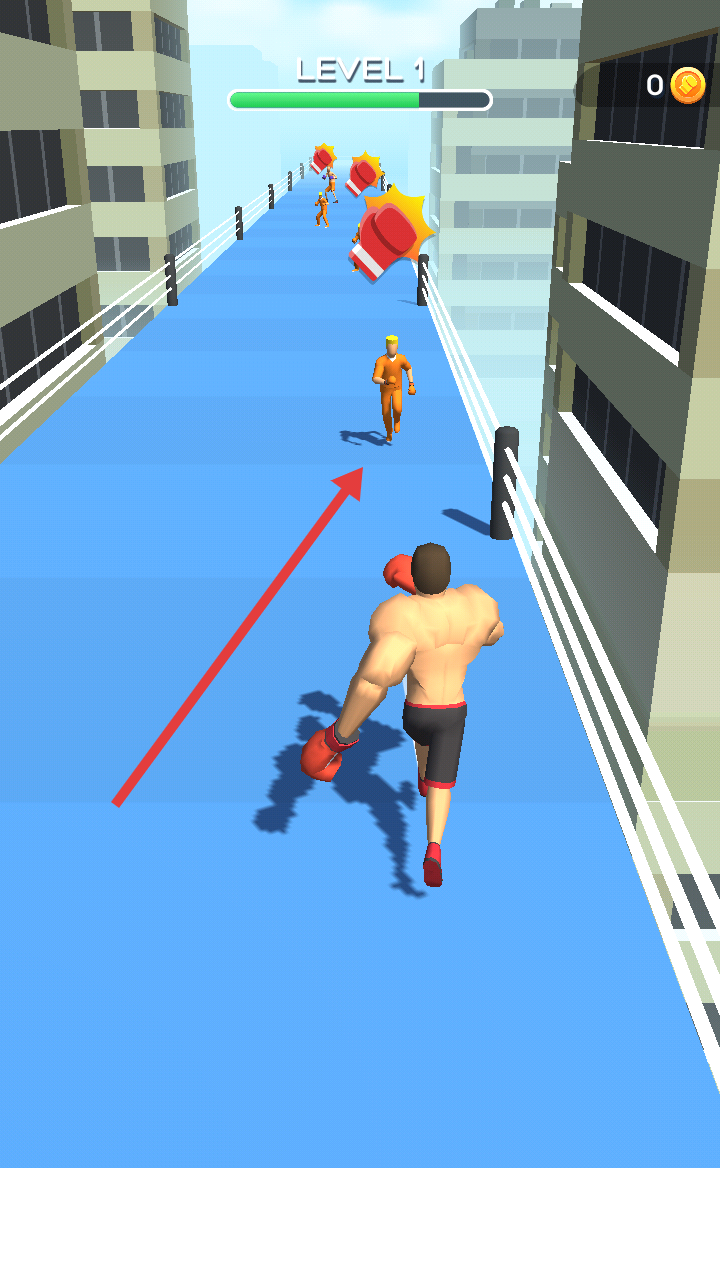 1、拖动屏幕控制拳击角色在城市赛道中移动,开始游戏挑战。