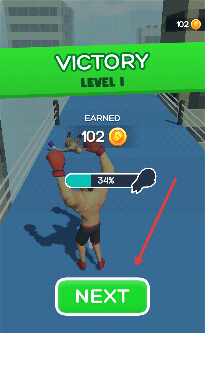4、关卡胜利后,点击NEXT按钮进入下一关,继续挑战更多城市拳击赛道关卡。