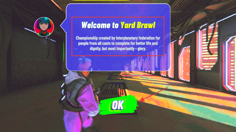 1、进入【WipeSquad】游戏后,看到【WelcometoYardBrawl】提示,点击【OK】按钮就能进入训练场景,准备开启射击任务。
