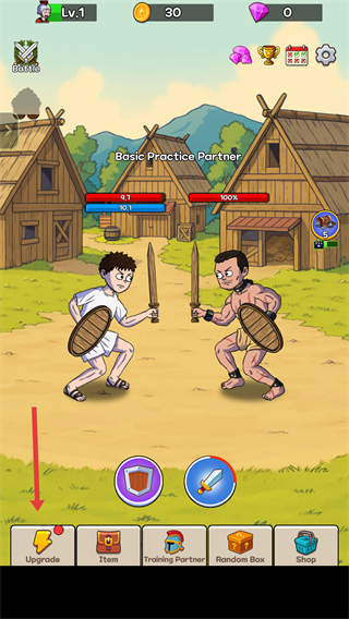 1、在对战界面点击【Upgrade】,进入升级界面。