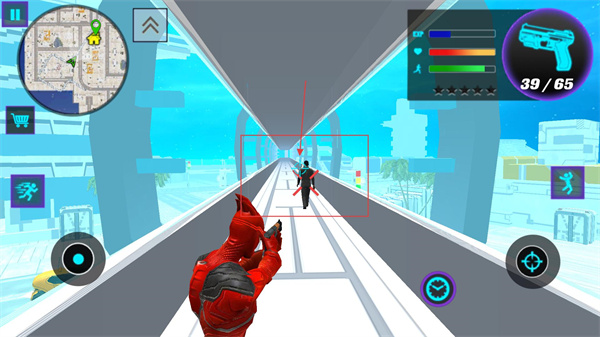 4、玩家可以切换至【手枪】武器(当前弹药39/65),瞄准目标单位进行攻击,完成击杀后获取目标物品,推进任务进度。