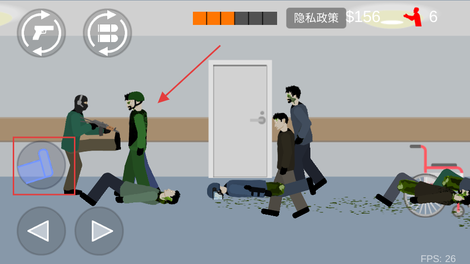 3、用简单操作(虚拟摇杆移动+点击射击)消灭敌人,调整准星命中的瞬间能领略到轻松消灭僵尸的爽感。