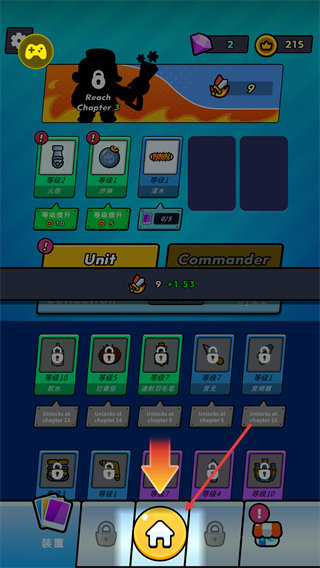 1、进入游戏,点击底部【房子图标】,进入战斗准备界面。