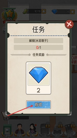 4、点击【前往】完成任务,解锁水泥墩子,获取钻石奖励,推进游戏进度。