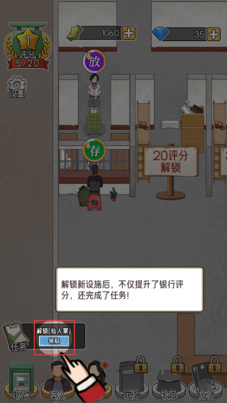 2、点击【领取】任务奖励,积累资源,提升银行评分,解锁新内容。