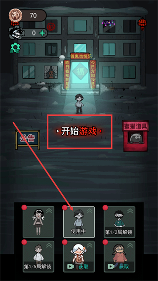 1、选择已解锁的角色,确认使用中的角色后点击开始游戏,快速进入游戏对局开启挑战。