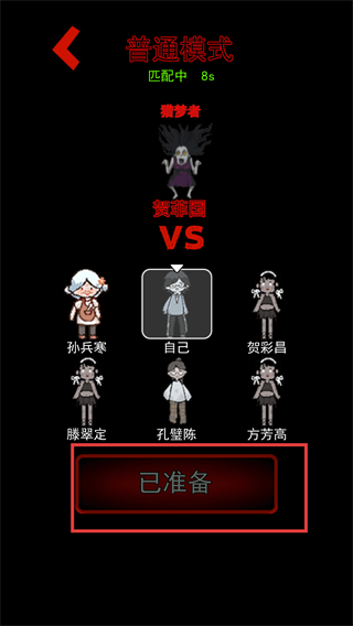2、进入普通模式匹配界面,等待匹配完成后点击已准备按钮,与猎梦者阵营展开对战。