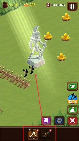 2、战斗时可点击底部的按钮,雇佣更多火柴人单位,提升战斗中的输出能力。