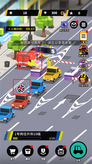 3、关注收费站内的车辆和事件,及时处理可增加车辆图鉴收集进度,同时推动1号岗位升级,逐步完善收费站运营。