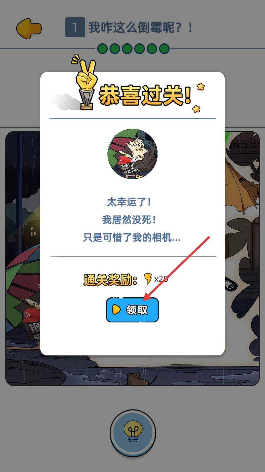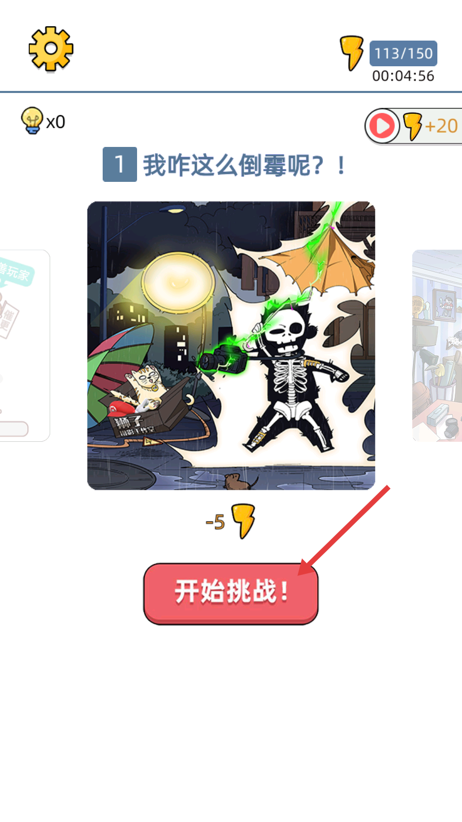 1、点击【开始挑战!】按钮,进入第一关【我咋这么倒霉呢?!】。