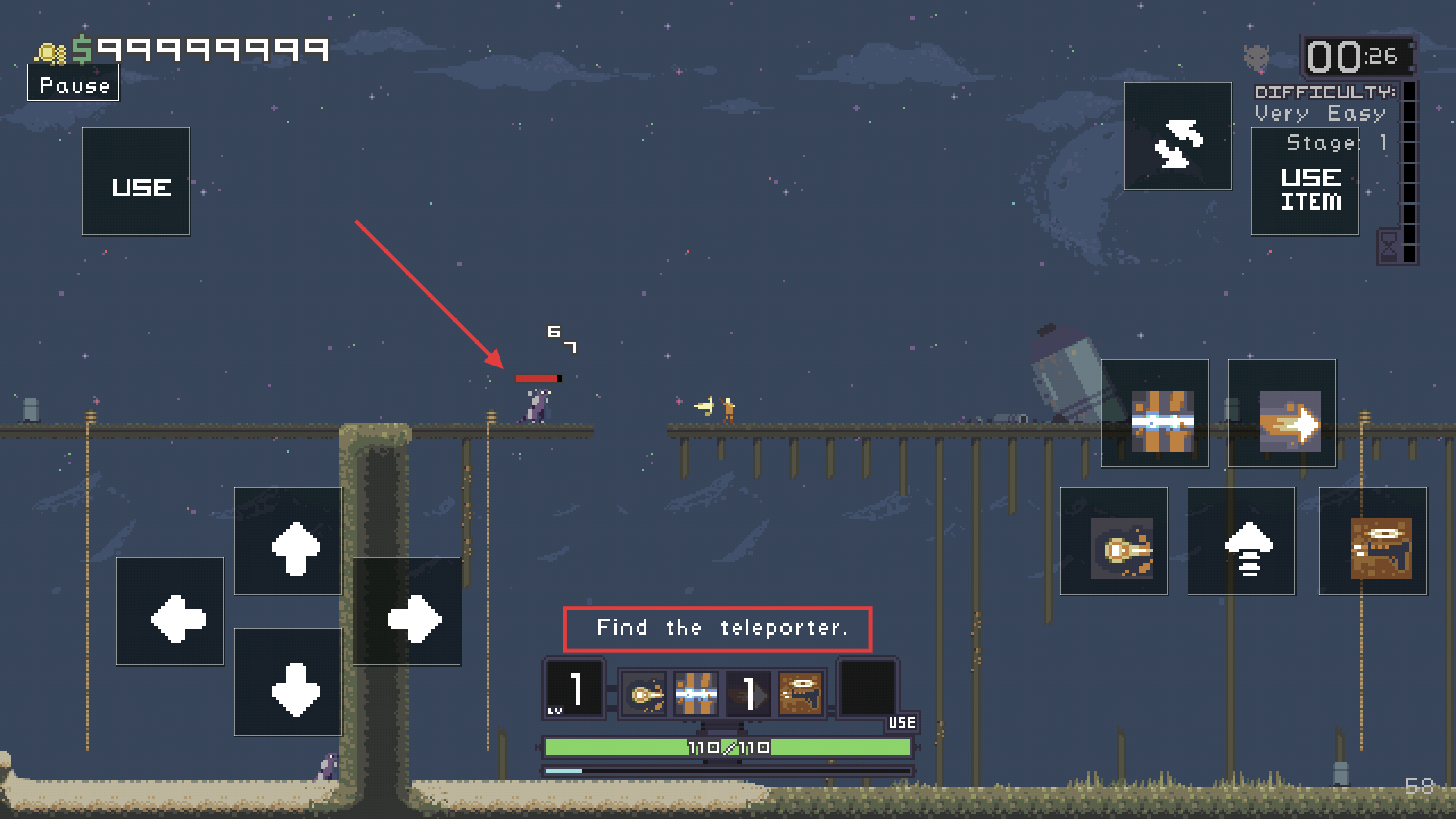 3、游戏内关注提示【Findtheteleporter】,击败敌人同时寻找传送器推进关卡。