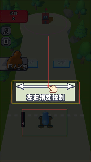1、通过左右滑动屏幕控制载具移动,这是收集场景中单位、积累数量的核心操作方式,需灵活调整位置以覆盖更多目标。