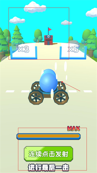 4、关卡末尾点击【连续点击发射】按钮,可释放积累的单位进行最后冲击,清空建筑数值以完成关卡,获取对应分数奖励。