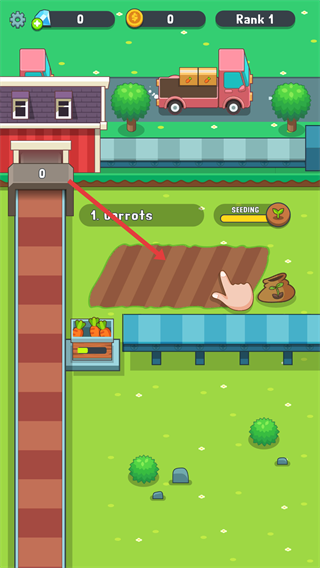 1、进入游戏后,跟随指引点击土地区域,开始种植胡萝卜。