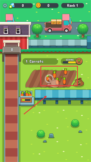 3、收集后的胡萝卜会被放置到【蓝色传送带】上,跟随指引将其移至左侧加工区域。