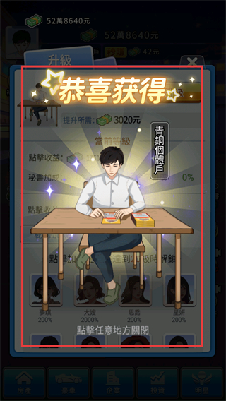 3、秘书招募系统完善,可雇佣不同特长的秘书处理日常事务,财务型助力成本管控,公关型化解竞争危机,提升运营效率。