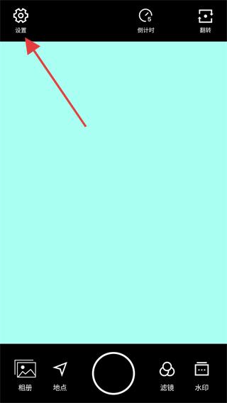 1、打开水印相机,点击界面左上角的【设置】选项,进入设置功能页面。