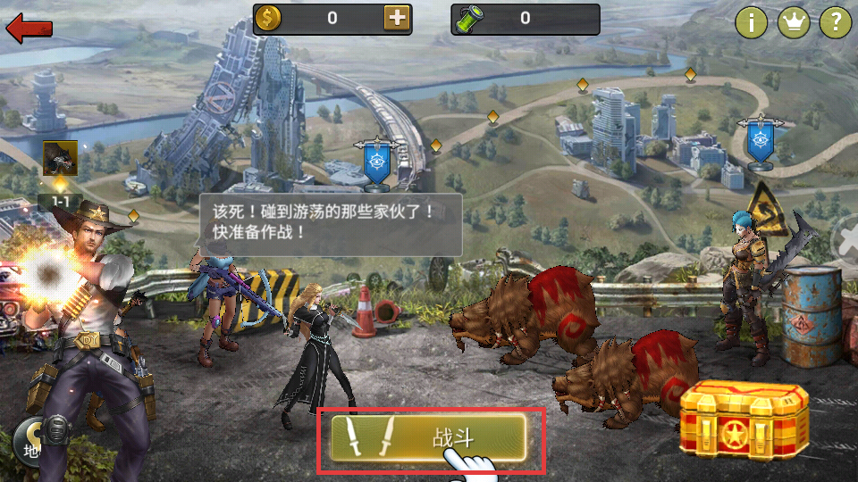 2、发现【游荡的家伙】,点击【战斗】按钮,进入与丧尸对战环节