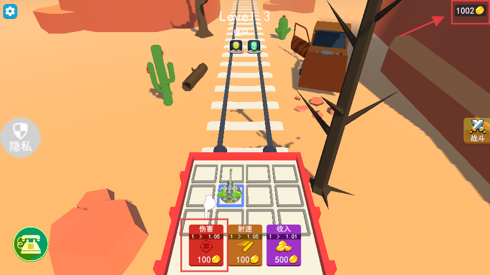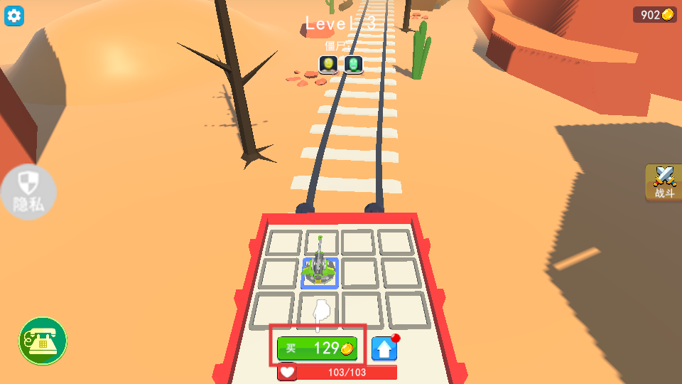 2、积攒足够金币后,点击购买新炮台,扩充列车防御火力,为后续尸潮做准备。