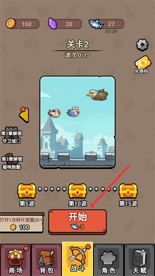 1、在关卡界面点击【开始】按钮,进入第2关的战斗准备阶段。