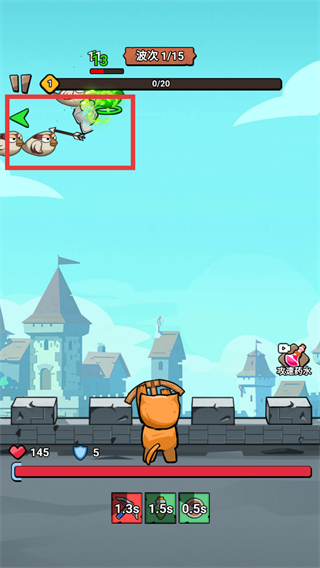 3、战斗中瞄准红色框内的敌人进行攻击,消灭敌人,推进波次进度。