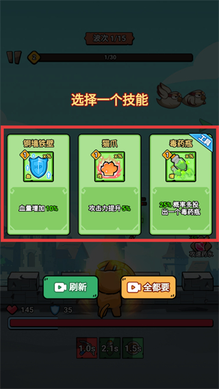 3、升级奖励系统依然充满随机性,每次升级都能从三个加成中选择最适合当前战局的,保持游戏趣味性。