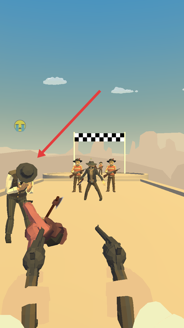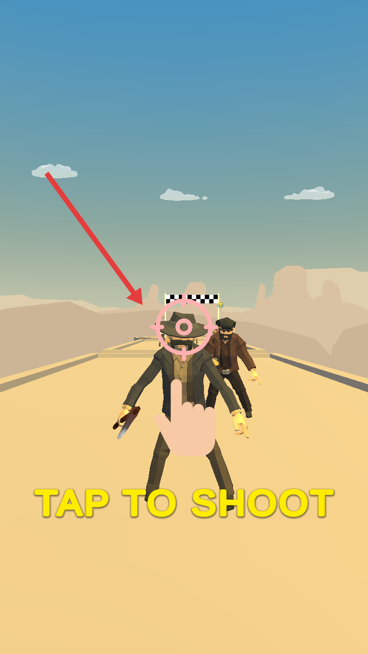 1、点击屏幕射击,在西部荒漠场景中开启射击挑战,瞄准并射击敌人。