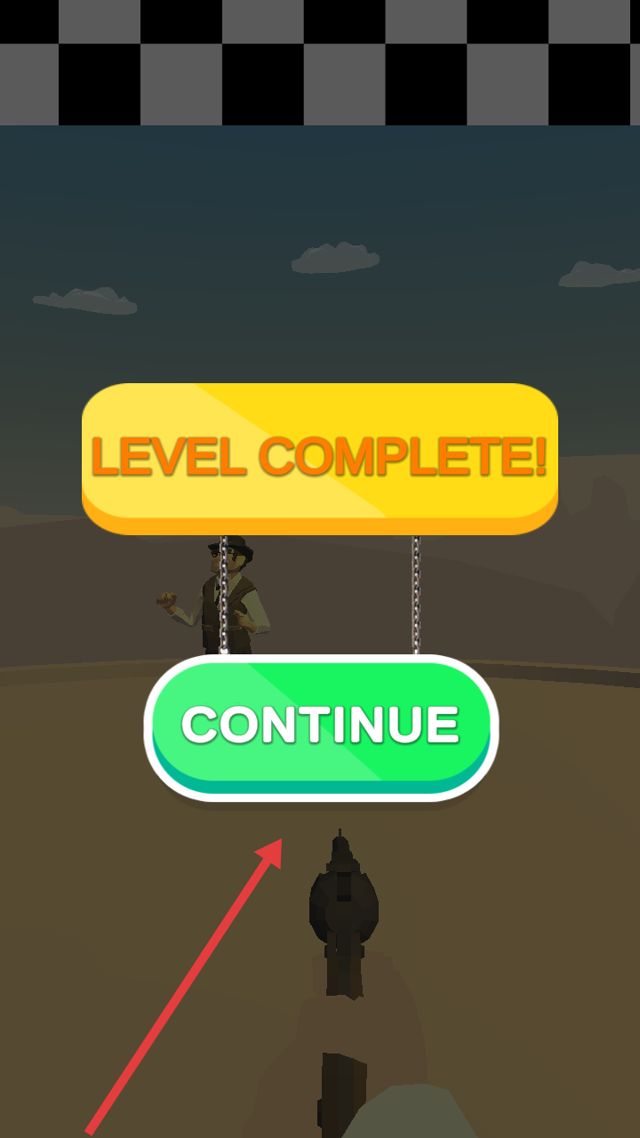 4、关卡完成后,点击CONTINUE按钮进入下一关,继续挑战更多西部荒漠的射击关卡。