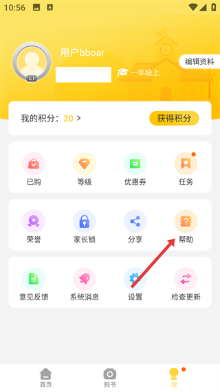 1、我们需要打开倍速点学,进入【我】的页面,点击【帮助】选项呢。
