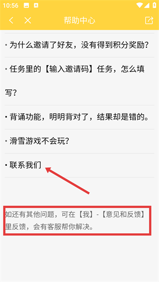 2、然后在帮助中心页面,点击【联系我们】直接联系,或者进入【意见和反馈】的入口哦。