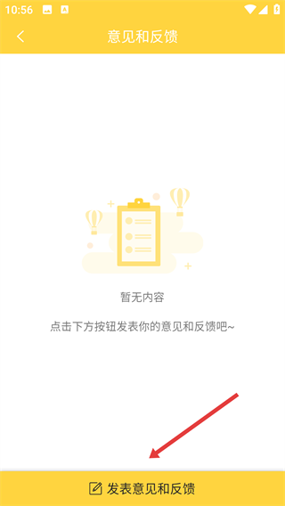 3、在意见和反馈页面,点击下方的【发表意见和反馈】按钮,进入编辑页面呀。