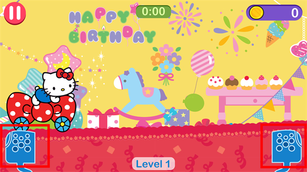 2、游戏中,利用左右两侧红色框内的按钮,控制赛车的移动和跳跃。