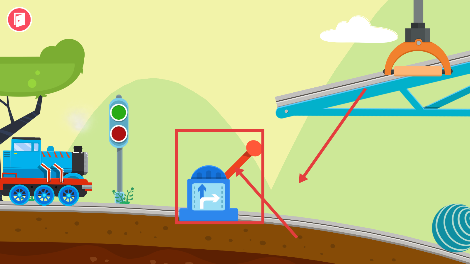 3、遇到轨道切换装置,点击控制轨道方向,让火车顺利驶向目标路线。