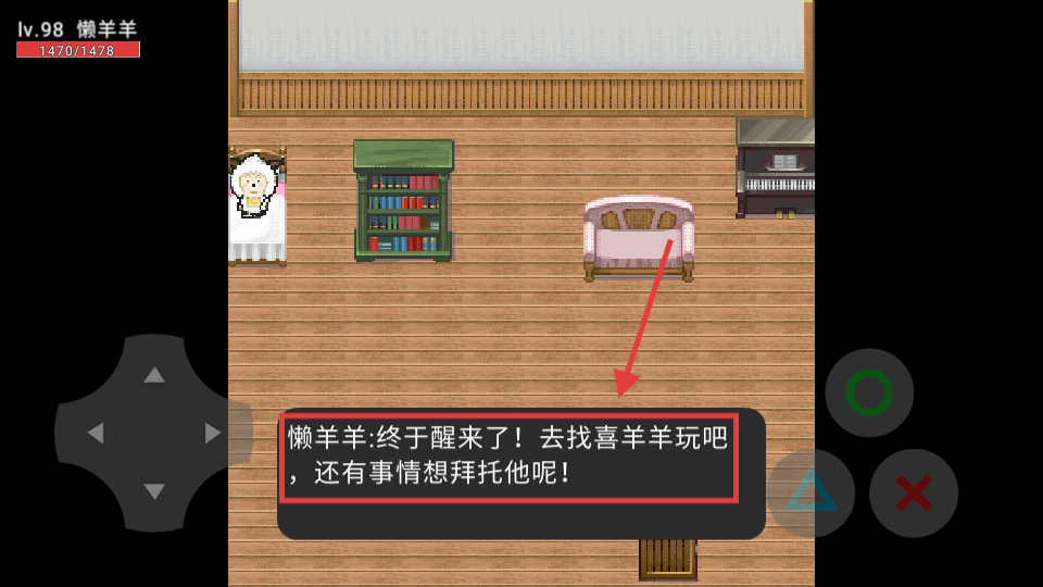 1、序章打开点击开始,查看红太狼日记,卧室移动后大厅对话灰太狼,返回卧室睡觉推进。