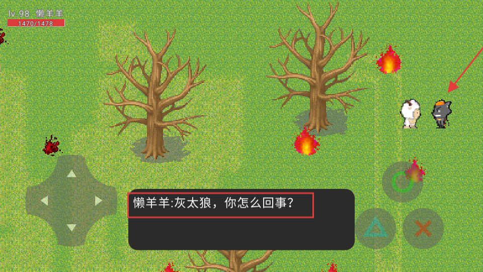 3、在户外场景遇到灰太狼时触发对话,懒羊羊会询问对方情况,需耐心查看对话内容获取线索。