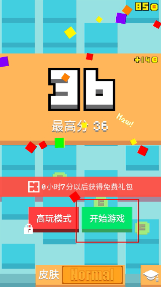 4、结算后查看【最高分36】记录,点击【开始游戏】重新挑战。