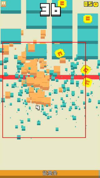 2、你在危难的时候随便点一块,满屏都是跳跃溅散的小方片,粒子效果得到了完美体现。